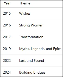 - Each year, events are often linked by a common theme, such as "Building Bridges" or "Strong Women."
